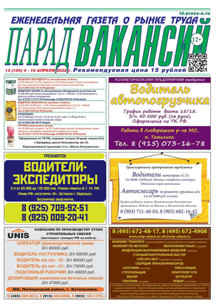 ЕЖЕНЕДЕЛЬНАЯ ГАЗЕТА О РЫНКЕ ТРУДА ПАРАД ВАКАНСИЙ