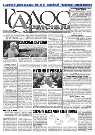 Общественно-политическое издание "Голос Армении" выходит с мая 1991 года и является наиболее популярной, авторитетной и цитируемой русскоязычной газетой страны. Спектр затрагиваемых проблем - самый широкий: от политики и экономики до культуры и социальных сетей, а авторы "Голоса Армении" по праву составляют золотой фонд современной армянской журналистики.