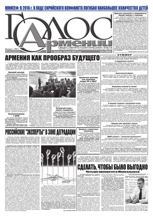 Общественно-политическое издание "Голос Армении"  выходит с мая 1991 года и является наиболее популярной, авторитетной и цитируемой русскоязычной газетой страны. Спектр затрагиваемых проблем - самый широкий: от политики и экономики до культуры и социальных сетей, а авторы "Голоса Армении" по праву составляют золотой фонд современной армянской журналистики.