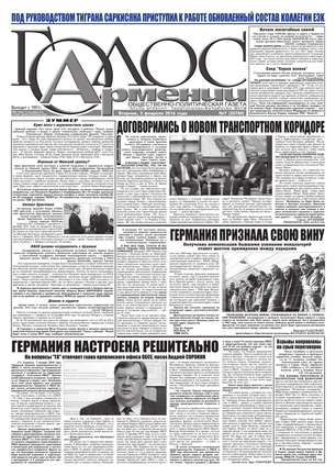 Общественно-политическое издание "Голос Армении" выходит с мая 1991 года и является наиболее популярной, авторитетной и цитируемой русскоязычной газетой страны. Спектр затрагиваемых проблем - самый широкий: от политики и экономики до культуры и социальных сетей, а авторы "Голоса Армении" по праву составляют золотой фонд современной армянской журналистики.
