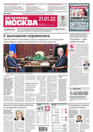 «Вечерняя Москва» — ежедневная российская вечерняя газета, старейшее из вечерних изданий в России, учрежденное в 1923 году. Выходит пять дней в неделю, кроме субботы и воскресенья. Отличается тем, что рассказывает о событиях еще не завершившегося дня. Оперативно освещает хронику и особенности жизни Москвы, охватывает все слои общества и большинство профессиональных и возрастных групп читателей.Издание представлено тремя выпусками – утренним ежедневным, вечерним (выходит три раза в неделю), еженедельным (выходит по четвергам).