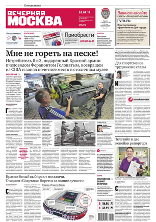 «Вечерняя Москва» — ежедневная российская вечерняя газета, старейшее из вечерних изданий в России, учрежденное в 1923 году. Выходит пять дней в неделю, кроме субботы и воскресенья. Отличается тем, что рассказывает о событиях еще не завершившегося дня. Оперативно освещает хронику и особенности жизни Москвы, охватывает все слои общества и большинство профессиональных и возрастных групп читателей.Издание представлено тремя выпусками – утренним ежедневным, вечерним (выходит три раза в неделю), еженедельным (выходит по четвергам).
