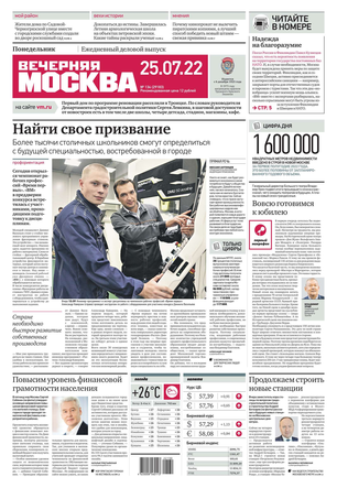 «Вечерняя Москва» — ежедневная российская вечерняя газета, старейшее из вечерних изданий в России, учрежденное в 1923 году. Выходит пять дней в неделю, кроме субботы и воскресенья. Отличается тем, что рассказывает о событиях еще не завершившегося дня. Оперативно освещает хронику и особенности жизни Москвы, охватывает все слои общества и большинство профессиональных и возрастных групп читателей.Издание представлено тремя выпусками – утренним ежедневным, вечерним (выходит три раза в неделю), еженедельным (выходит по четвергам).