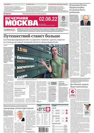 «Вечерняя Москва» — ежедневная российская вечерняя газета, старейшее из вечерних изданий в России, учрежденное в 1923 году. Выходит пять дней в неделю, кроме субботы и воскресенья. Отличается тем, что рассказывает о событиях еще не завершившегося дня. Оперативно освещает хронику и особенности жизни Москвы, охватывает все слои общества и большинство профессиональных и возрастных групп читателей.Издание представлено тремя выпусками – утренним ежедневным, вечерним (выходит три раза в неделю), еженедельным (выходит по четвергам).