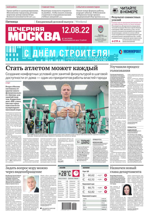 «Вечерняя Москва» — ежедневная российская вечерняя газета, старейшее из вечерних изданий в России, учрежденное в 1923 году. Выходит пять дней в неделю, кроме субботы и воскресенья. Отличается тем, что рассказывает о событиях еще не завершившегося дня. Оперативно освещает хронику и особенности жизни Москвы, охватывает все слои общества и большинство профессиональных и возрастных групп читателей.Издание представлено тремя выпусками – утренним ежедневным, вечерним (выходит три раза в неделю), еженедельным (выходит по четвергам).