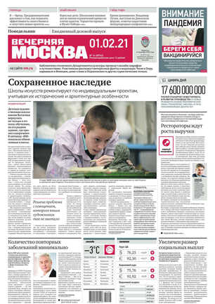 «Вечерняя Москва» — ежедневная российская вечерняя газета, старейшее из вечерних изданий в России, учрежденное в 1923 году. Выходит пять дней в неделю, кроме субботы и воскресенья. Отличается тем, что рассказывает о событиях еще не завершившегося дня. Оперативно освещает хронику и особенности жизни Москвы, охватывает все слои общества и большинство профессиональных и возрастных групп читателей.Издание представлено тремя выпусками – утренним ежедневным, вечерним (выходит три раза в неделю), еженедельным (выходит по четвергам).