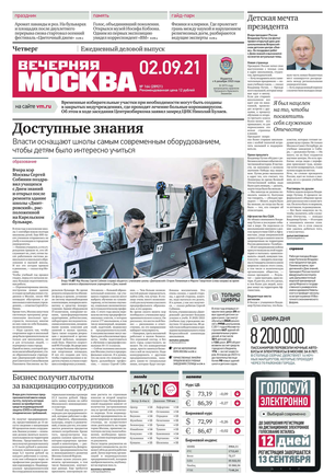 «Вечерняя Москва» — ежедневная российская вечерняя газета, старейшее из вечерних изданий в России, учрежденное в 1923 году. Выходит пять дней в неделю, кроме субботы и воскресенья. Отличается тем, что рассказывает о событиях еще не завершившегося дня. Оперативно освещает хронику и особенности жизни Москвы, охватывает все слои общества и большинство профессиональных и возрастных групп читателей.Издание представлено тремя выпусками – утренним ежедневным, вечерним (выходит три раза в неделю), еженедельным (выходит по четвергам).