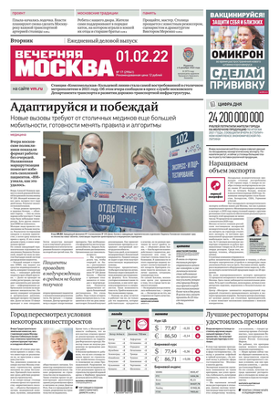 «Вечерняя Москва» — ежедневная российская вечерняя газета, старейшее из вечерних изданий в России, учрежденное в 1923 году. Выходит пять дней в неделю, кроме субботы и воскресенья. Отличается тем, что рассказывает о событиях еще не завершившегося дня. Оперативно освещает хронику и особенности жизни Москвы, охватывает все слои общества и большинство профессиональных и возрастных групп читателей.Издание представлено тремя выпусками – утренним ежедневным, вечерним (выходит три раза в неделю), еженедельным (выходит по четвергам).