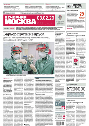«Вечерняя Москва» — ежедневная российская вечерняя газета, старейшее из вечерних изданий в России, учрежденное в 1923 году. Выходит пять дней в неделю, кроме субботы и воскресенья. Отличается тем, что рассказывает о событиях еще не завершившегося дня. Оперативно освещает хронику и особенности жизни Москвы, охватывает все слои общества и большинство профессиональных и возрастных групп читателей.Издание представлено тремя выпусками – утренним ежедневным, вечерним (выходит три раза в неделю), еженедельным (выходит по четвергам).