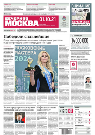«Вечерняя Москва» — ежедневная российская вечерняя газета, старейшее из вечерних изданий в России, учрежденное в 1923 году. Выходит пять дней в неделю, кроме субботы и воскресенья. Отличается тем, что рассказывает о событиях еще не завершившегося дня. Оперативно освещает хронику и особенности жизни Москвы, охватывает все слои общества и большинство профессиональных и возрастных групп читателей.Издание представлено тремя выпусками – утренним ежедневным, вечерним (выходит три раза в неделю), еженедельным (выходит по четвергам).