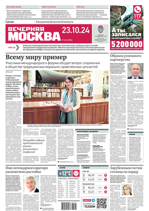 «Вечерняя Москва» — ежедневная российская вечерняя газета, старейшее из вечерних изданий в России, учрежденное в 1923 году. Выходит пять дней в неделю, кроме субботы и воскресенья. Отличается тем, что рассказывает о событиях еще не завершившегося дня. Оперативно освещает хронику и особенности жизни Москвы, охватывает все слои общества и большинство профессиональных и возрастных групп читателей.Издание представлено тремя выпусками – утренним ежедневным, вечерним (выходит три раза в неделю), еженедельным (выходит по четвергам).