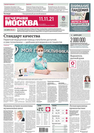«Вечерняя Москва» — ежедневная российская вечерняя газета, старейшее из вечерних изданий в России, учрежденное в 1923 году. Выходит пять дней в неделю, кроме субботы и воскресенья. Отличается тем, что рассказывает о событиях еще не завершившегося дня. Оперативно освещает хронику и особенности жизни Москвы, охватывает все слои общества и большинство профессиональных и возрастных групп читателей.Издание представлено тремя выпусками – утренним ежедневным, вечерним (выходит три раза в неделю), еженедельным (выходит по четвергам).