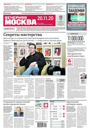 «Вечерняя Москва» — ежедневная российская вечерняя газета, старейшее из вечерних изданий в России, учрежденное в 1923 году. Выходит пять дней в неделю, кроме субботы и воскресенья. Отличается тем, что рассказывает о событиях еще не завершившегося дня. Оперативно освещает хронику и особенности жизни Москвы, охватывает все слои общества и большинство профессиональных и возрастных групп читателей.Издание представлено тремя выпусками – утренним ежедневным, вечерним (выходит три раза в неделю), еженедельным (выходит по четвергам).