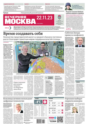 «Вечерняя Москва» — ежедневная российская вечерняя газета, старейшее из вечерних изданий в России, учрежденное в 1923 году. Выходит пять дней в неделю, кроме субботы и воскресенья. Отличается тем, что рассказывает о событиях еще не завершившегося дня. Оперативно освещает хронику и особенности жизни Москвы, охватывает все слои общества и большинство профессиональных и возрастных групп читателей.Издание представлено тремя выпусками – утренним ежедневным, вечерним (выходит три раза в неделю), еженедельным (выходит по четвергам).