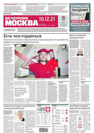 «Вечерняя Москва» — ежедневная российская вечерняя газета, старейшее из вечерних изданий в России, учрежденное в 1923 году. Выходит пять дней в неделю, кроме субботы и воскресенья. Отличается тем, что рассказывает о событиях еще не завершившегося дня. Оперативно освещает хронику и особенности жизни Москвы, охватывает все слои общества и большинство профессиональных и возрастных групп читателей.Издание представлено тремя выпусками – утренним ежедневным, вечерним (выходит три раза в неделю), еженедельным (выходит по четвергам).