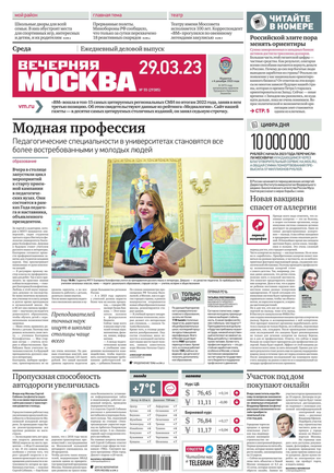 «Вечерняя Москва» — ежедневная российская вечерняя газета, старейшее из вечерних изданий в России, учрежденное в 1923 году. Выходит пять дней в неделю, кроме субботы и воскресенья. Отличается тем, что рассказывает о событиях еще не завершившегося дня. Оперативно освещает хронику и особенности жизни Москвы, охватывает все слои общества и большинство профессиональных и возрастных групп читателей.Издание представлено тремя выпусками – утренним ежедневным, вечерним (выходит три раза в неделю), еженедельным (выходит по четвергам).