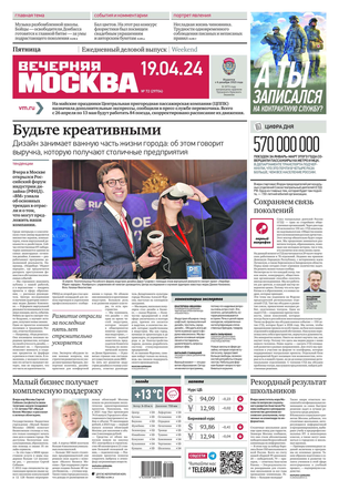 «Вечерняя Москва» — ежедневная российская вечерняя газета, старейшее из вечерних изданий в России, учрежденное в 1923 году. Выходит пять дней в неделю, кроме субботы и воскресенья. Отличается тем, что рассказывает о событиях еще не завершившегося дня. Оперативно освещает хронику и особенности жизни Москвы, охватывает все слои общества и большинство профессиональных и возрастных групп читателей.Издание представлено тремя выпусками – утренним ежедневным, вечерним (выходит три раза в неделю), еженедельным (выходит по четвергам).