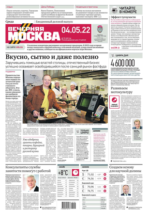 «Вечерняя Москва» — ежедневная российская вечерняя газета, старейшее из вечерних изданий в России, учрежденное в 1923 году. Выходит пять дней в неделю, кроме субботы и воскресенья. Отличается тем, что рассказывает о событиях еще не завершившегося дня. Оперативно освещает хронику и особенности жизни Москвы, охватывает все слои общества и большинство профессиональных и возрастных групп читателей.Издание представлено тремя выпусками – утренним ежедневным, вечерним (выходит три раза в неделю), еженедельным (выходит по четвергам).