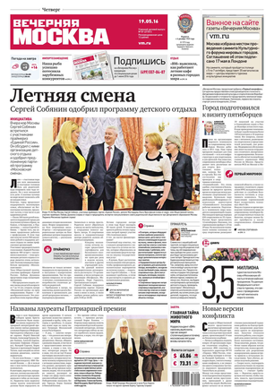 «Вечерняя Москва» — ежедневная российская вечерняя газета, старейшее из вечерних изданий в России, учрежденное в 1923 году. Выходит пять дней в неделю, кроме субботы и воскресенья. Отличается тем, что рассказывает о событиях еще не завершившегося дня. Оперативно освещает хронику и особенности жизни Москвы, охватывает все слои общества и большинство профессиональных и возрастных групп читателей.Издание представлено тремя выпусками – утренним ежедневным, вечерним (выходит три раза в неделю), еженедельным (выходит по четвергам).