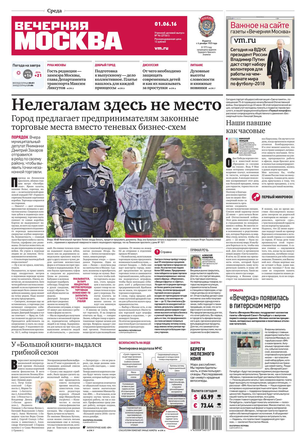 «Вечерняя Москва» — ежедневная российская вечерняя газета, старейшее из вечерних изданий в России, учрежденное в 1923 году. Выходит пять дней в неделю, кроме субботы и воскресенья. Отличается тем, что рассказывает о событиях еще не завершившегося дня. Оперативно освещает хронику и особенности жизни Москвы, охватывает все слои общества и большинство профессиональных и возрастных групп читателей.Издание представлено тремя выпусками – утренним ежедневным, вечерним (выходит три раза в неделю), еженедельным (выходит по четвергам).