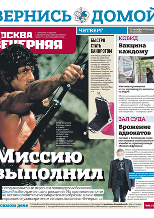 «Вечерняя Москва» — ежедневная российская вечерняя газета, старейшее из вечерних изданий в России, учрежденное в 1923 году. Выходит пять дней в неделю, кроме субботы и воскресенья. Отличается тем, что рассказывает о событиях еще не завершившегося дня. Оперативно освещает хронику и особенности жизни Москвы, охватывает все слои общества и большинство профессиональных и возрастных групп читателей.Издание представлено тремя выпусками – утренним ежедневным, вечерним (выходит три раза в неделю), еженедельным (выходит по четвергам).