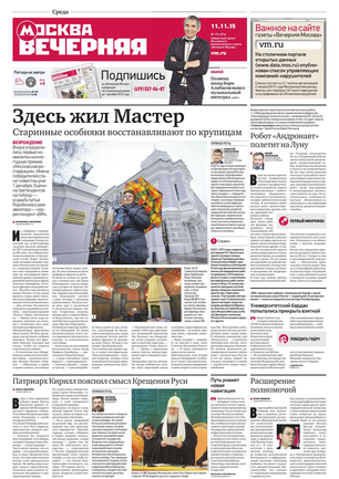 «Вечерняя Москва» — ежедневная российская вечерняя газета, старейшее из вечерних изданий в России, учрежденное в 1923 году. Выходит пять дней в неделю, кроме субботы и воскресенья. Отличается тем, что рассказывает о событиях еще не завершившегося дня. Оперативно освещает хронику и особенности жизни Москвы, охватывает все слои общества и большинство профессиональных и возрастных групп читателей.Издание представлено тремя выпусками – утренним ежедневным, вечерним (выходит три раза в неделю), еженедельным (выходит по четвергам).