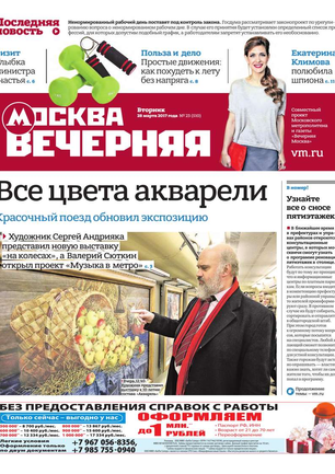 «Вечерняя Москва» — ежедневная российская вечерняя газета, старейшее из вечерних изданий в России, учрежденное в 1923 году. Выходит пять дней в неделю, кроме субботы и воскресенья. Отличается тем, что рассказывает о событиях еще не завершившегося дня. Оперативно освещает хронику и особенности жизни Москвы, охватывает все слои общества и большинство профессиональных и возрастных групп читателей.Издание представлено тремя выпусками – утренним ежедневным, вечерним (выходит три раза в неделю), еженедельным (выходит по четвергам).