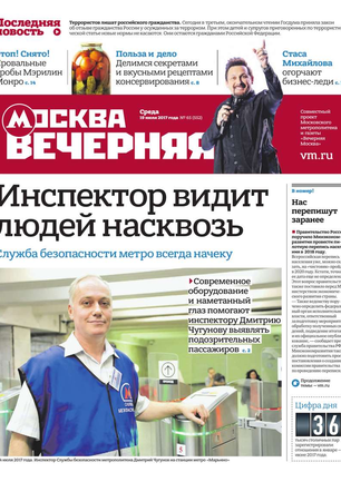 «Вечерняя Москва» — ежедневная российская вечерняя газета, старейшее из вечерних изданий в России, учрежденное в 1923 году. Выходит пять дней в неделю, кроме субботы и воскресенья. Отличается тем, что рассказывает о событиях еще не завершившегося дня. Оперативно освещает хронику и особенности жизни Москвы, охватывает все слои общества и большинство профессиональных и возрастных групп читателей.Издание представлено тремя выпусками – утренним ежедневным, вечерним (выходит три раза в неделю), еженедельным (выходит по четвергам).