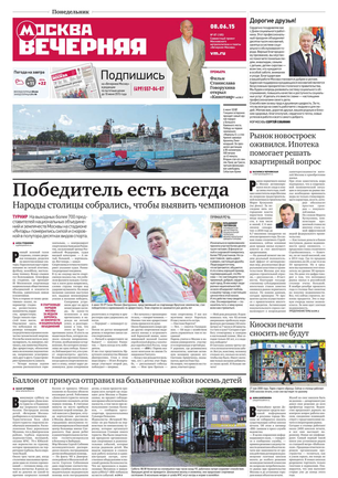 «Вечерняя Москва» — ежедневная российская вечерняя газета, старейшее из вечерних изданий в России, учрежденное в 1923 году. Выходит пять дней в неделю, кроме субботы и воскресенья. Отличается тем, что рассказывает о событиях еще не завершившегося дня. Оперативно освещает хронику и особенности жизни Москвы, охватывает все слои общества и большинство профессиональных и возрастных групп читателей.Издание представлено тремя выпусками – утренним ежедневным, вечерним (выходит три раза в неделю), еженедельным (выходит по четвергам).