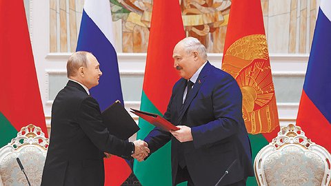 Москва и Минск вышли на беспрецедентный уровень союзничества: как в обороне, так и в экономике. Президенты РФ и Беларуси Владимир Путин и Александр Лукашенко подписали договор о гарантиях взаимной безопасности в рамках Союзного государства, который предполагает задействование для защиты территории двух государств всех сил, в том числе российского ядерного оружия. Российский лидер также объявил, что в Беларуси начнется размещение систем ракетного комплекса "Орешник" уже во второй половине 2025 года. Кроме того, подписаны документы об отмене роуминга и едином рынке электроэнергии.
