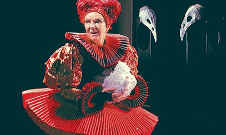 Влюбила в себя публику, пришедшую на знакомое название, и великолепная сценография Анастасии Глебовой, взбодрившая изысканной красотой гобеленов, с которыми прекрасно сочетаются строгий стол королевы и изящные стулья для гостей, ковры на полу и даже подносы. Всё это заставляло с наслаждением смотреть на сцену, слушая со вниманием все монологи и диалоги.
