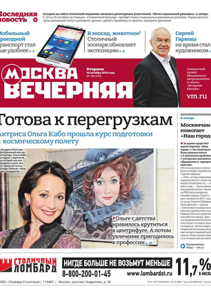 «Вечерняя Москва» — ежедневная российская вечерняя газета, старейшее из вечерних изданий в России, учрежденное в 1923 году. Выходит пять дней в неделю, кроме субботы и воскресенья. Отличается тем, что рассказывает о событиях еще не завершившегося дня. Оперативно освещает хронику и особенности жизни Москвы, охватывает все слои общества и большинство профессиональных и возрастных групп читателей.Издание представлено тремя выпусками – утренним ежедневным, вечерним (выходит три раза в неделю), еженедельным (выходит по четвергам).