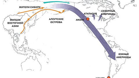 Из всех обжитых современным человеком частей света Америка была заселена в последнюю очередь. Представление о том, что люди попали в Северную Америку из Сибири через Берингийский перешеек, некогда соединявший континенты, появилось ещё в 30-х годах прошлого века и сегодня ни у кого не вызывает сомнений. Доказательства сибирского происхождения коренных американцев обнаружены в находках антропологов и археологов, а в последние десятилетия они подкреплены генетическими исследованиями.