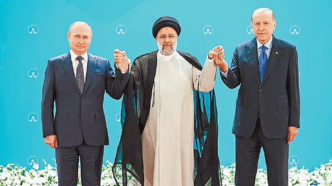 Президент России Владимир Путин вчера прилетел в Тегеран на саммит стран - гарантов "астанинского процесса" по Сирии. Здесь прошли переговоры российского лидера с президентами Исламской Республики Иран и Турции Эбрахимом Раиси и Реджепом Тайипом Эрдоганом. Это первый саммит такого формата, который проходит очно после пандемии коронавируса. Лидеры заявили о прогрессе в вопросе сирийского урегулирования. А Путин отдельно отметил посредническую роль Турции по проблеме вывоза украинского зерна. В этом вопросе есть движение, заявил российский президент.