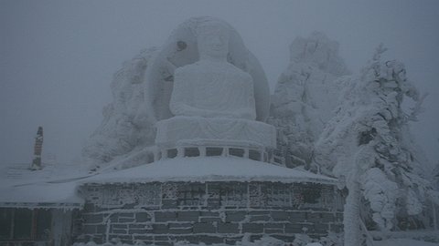 Здесь, почти на километровой высоте, первый снег выпал еще в сентябре. Потом растаял, чтобы в начале ноября лечь насовсем. Деревья все белые, будто облиты сахарной глазурью. Над пропастью парят орлы. Белоснежный пейзаж оттеняют дома-пагоды. И за всем этим великолепием присматривает шестиметровый Будда. Наверное, не так уж не правы те, кто сравнивает монастырь с деревней нави из «Аватара». Здесь и правда другая планета.